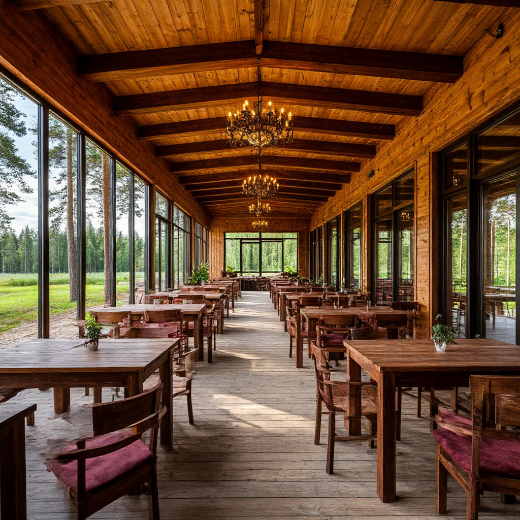 Питаются наши гости в уютном ресторане «Вино и Сосны», расположенный на территории комплекса. Здесь можно и тихо провести время вдвоем, и посидеть у камина, и развлечься в прекрасной компании — и, конечно же, насладиться блюдами от нашего шеф-повара. Завтраки, обеды и ужины, которые мы предлагаем гостям — это не привычное «заказное меню», а готовые сеты — каждый раз разные, и прием пищи превращается в настоящее гастрономическое приключение.