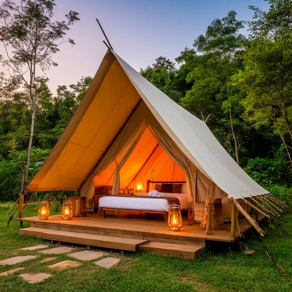 Каждый из глэмпинг-домиков — отдельный номер-студия, стильный, уютный, отлично обставленный и оснащенный в соответствии со всеми современными требованиями к комфортному проживанию. Они расположены в отдалении друг от друга, отлично звукоизолированы: ваше чувство уединения ничто не нарушит. А большие панорамные окна с видом на прекрасный сосновый лес, а также большие меблированные веранды, на которых так приятно сидеть, наслаждаясь ароматом хвои и пением птиц, позволят вам чувствовать близость к природе в каждое мгновенье, проведенное здесь.