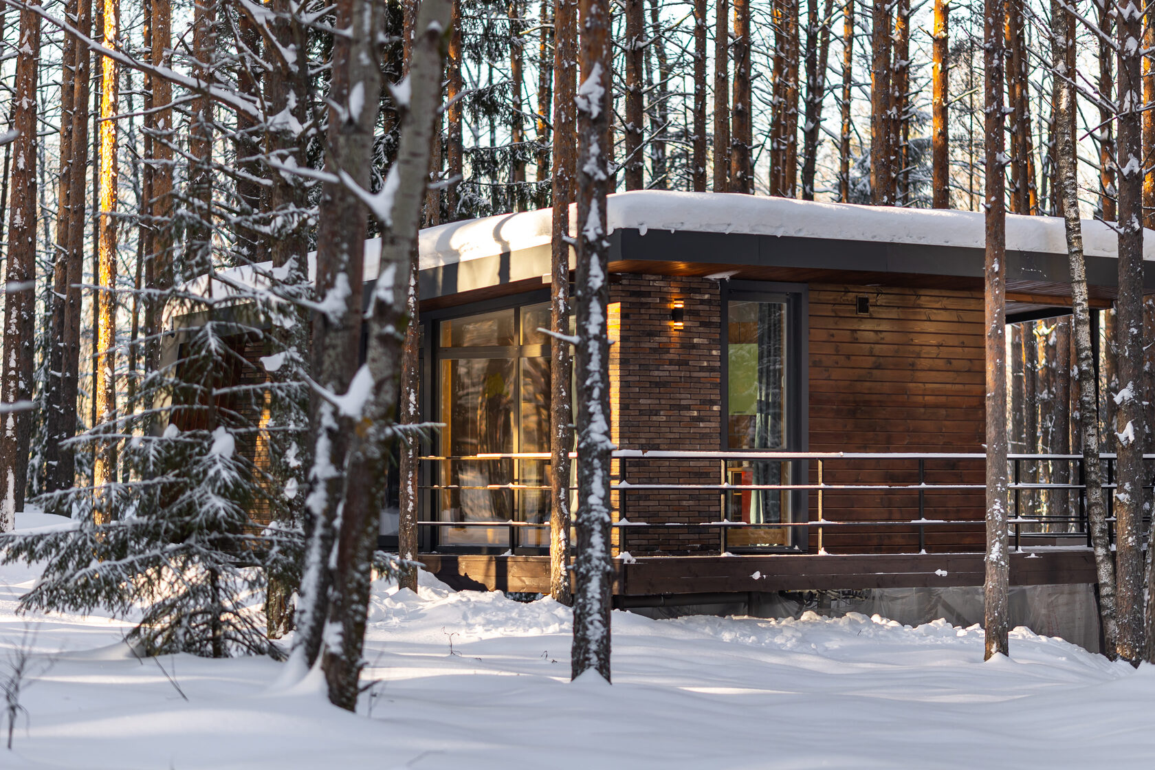 Гостей комплекса ждут современные коттеджи в лесу, выполненные в лаконичном скандинавском стиле. Просторные панорамные окна открывают вид на вековые сосны, а собственная терраса позволяет наслаждаться свежим воздухом в любое время дня.